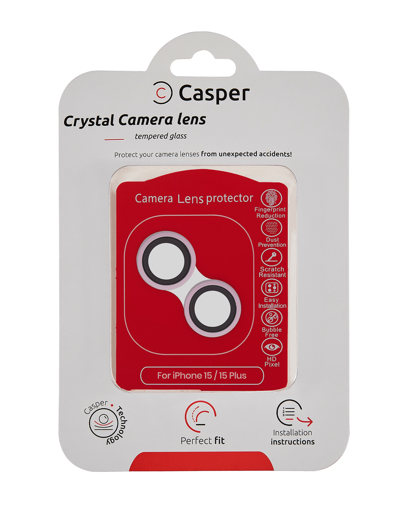 Casper Camera Lens Protector Compatible For iPhone 15 / 15 Plus (Pink) (Clear)
